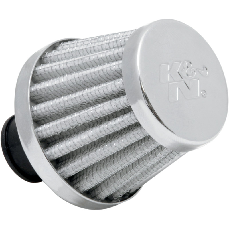 K & N Rubber Base Crankcase Vent Filter (Blue, 3/8" ID) Protect and optimize your engine and venting system with the K & N Rubber Base Crankcase Vent Filter . Built for performance applications, this clamp-on filter helps keep contaminants out of crankcase ventilation—ideal for street, off-road, UTV, ATV, and racing setups. Key Features Versatile use for engines, transmissions, oil tanks, and gas tanks on racing vehicles Clamp-on fit designed to mount directly to metal or plastic tubing Cotton gauze filtration for reliable airflow and filtration performance Made in the USA for quality you can trust Specifications Style: Clamp-On Filter Media: Cotton Gauze Filter Shape: Tapered / Round Filter Height: 1-3/4" Inside Diameter: 10.00 mm (3/8") Base Color: Blue Color/Finish: Blue (Chrome listed) Flange Position: Centered Units: Each Weight: 0.2 lbs | Dimensions: 6.3" x 4.2" x 2.18" Upgrade your crankcase venting with a compact, performance-ready solution from K & N .